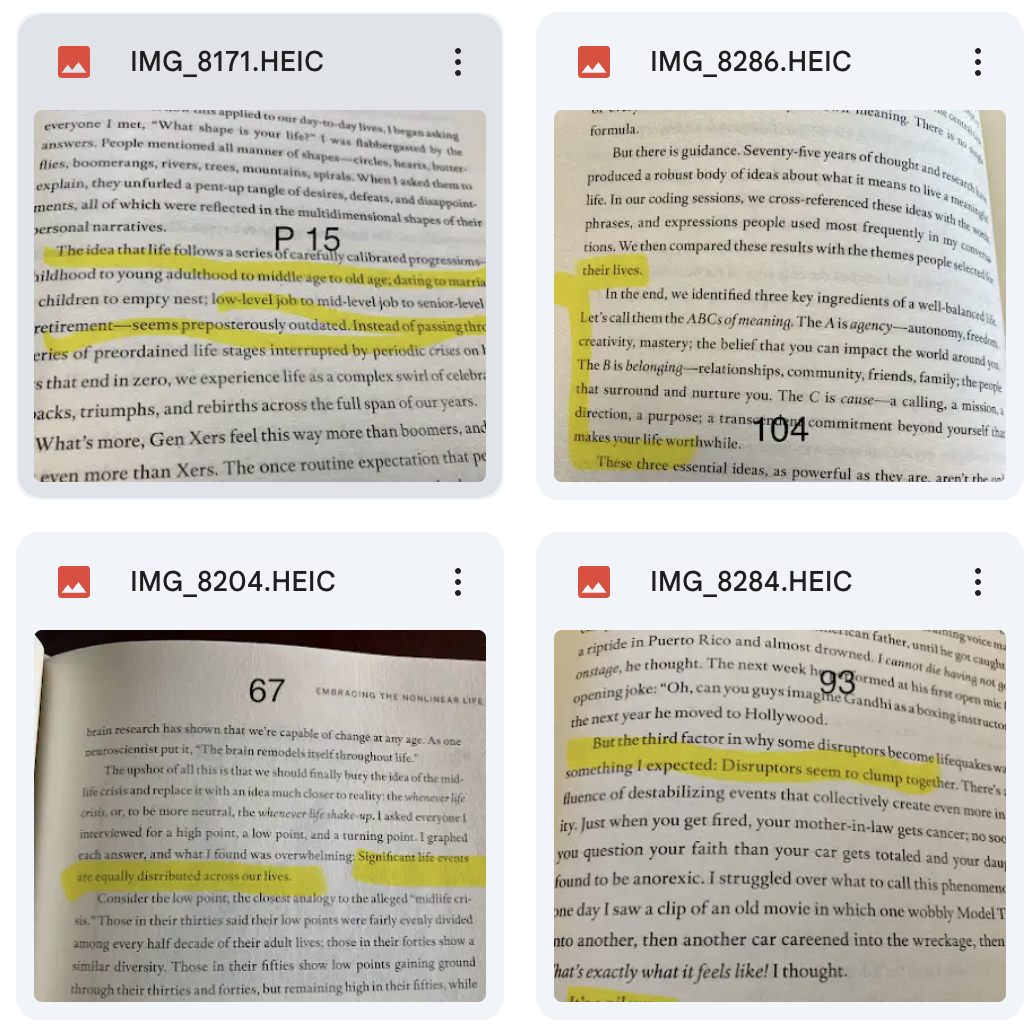 To get through books for research, I take a photo of the page on my phone, quickly highlight the text, and put them in folders on my Drive. Usually I snag a chapter or two throughout the evening/weekend between momming/other stuff.