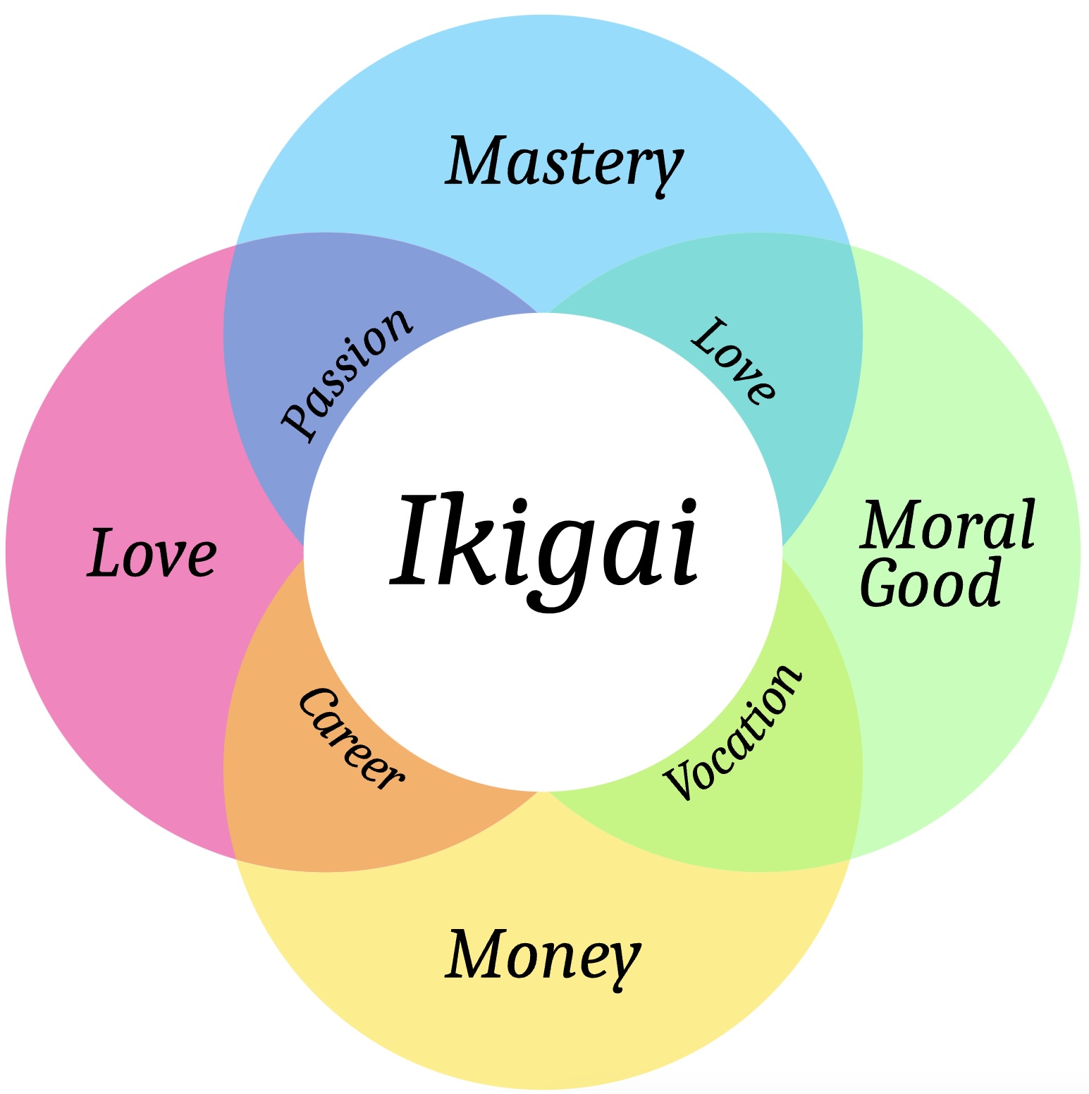 To those in the West who are more familiar with the concept of ikigai, it’s often associated with a Venn diagram with four overlapping qualities: what you love, what you are good at, what the world needs, and what you can be paid for.